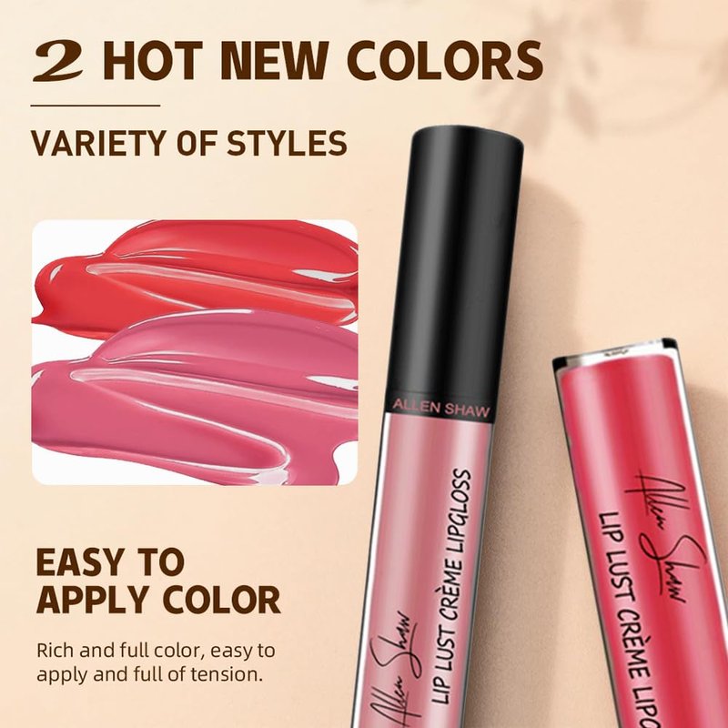 2PCS Cream Lip Gloss, Sexy Women Lipstick, Moisturising Liquid Lipstick, Non-Fading, Non-Stick to Cup, Non-Stick to Cup, 2024 New Waterproof Lip Gloss, Vivid Colorful Lipgloss Women Makeup