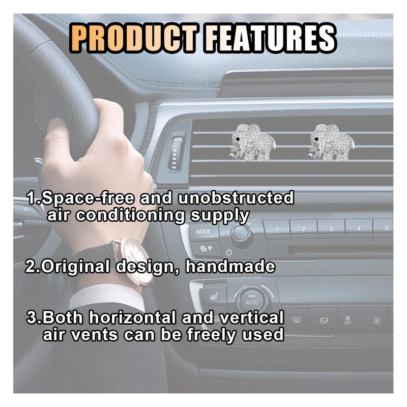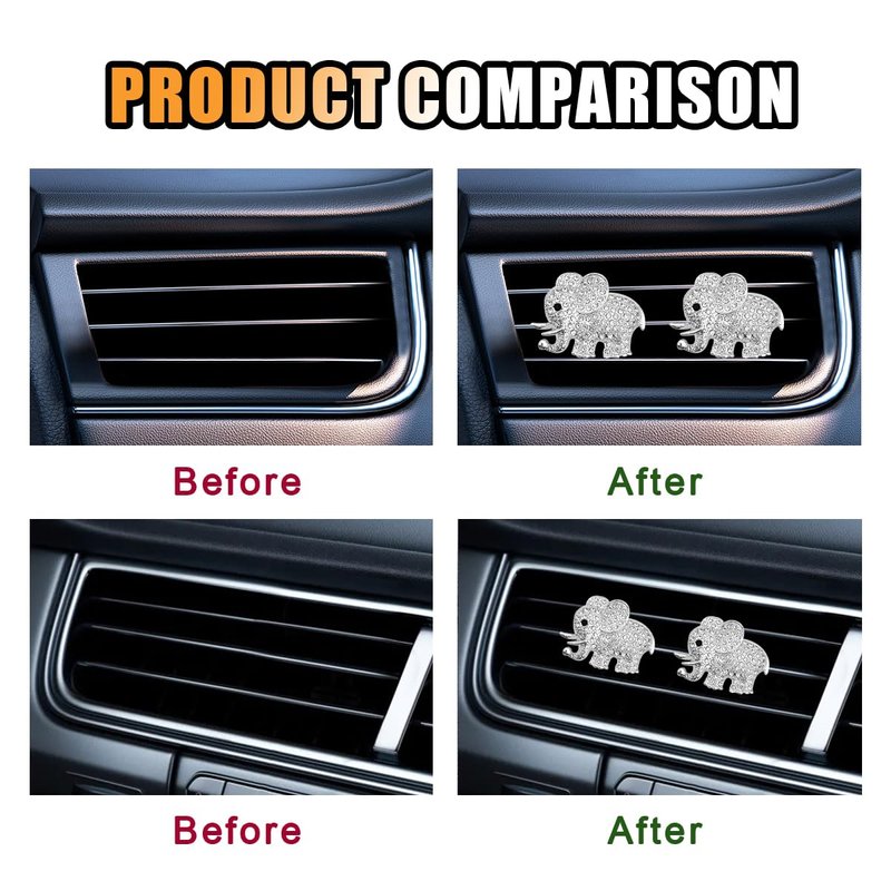 - 【High Quality Material】:The car exhaust clips are crafted from high-quality alloy, making them sturdy and durable, and less likely to break. The rhinestones are firmly attached to them, ensuring they won't come off easily. You can use them in your car for an extended period of time to keep the interior fresh and fragrant.