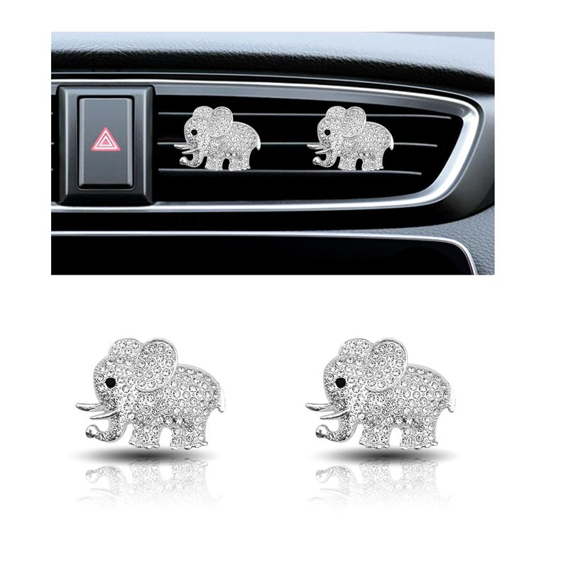 2PCS Crystal Diamond Car Air Vent Clip, Elephant Bling Charms Crystal Car Air Vent Clip Car Freshening Diffuser, Bling Car Interior Decorative Accessories for Women Girls