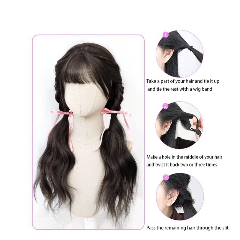 - 💗For the tutorial on how to wear fake pony tail hair accessories, please see Figure 5. Comb well before braiding to avoid tangle.