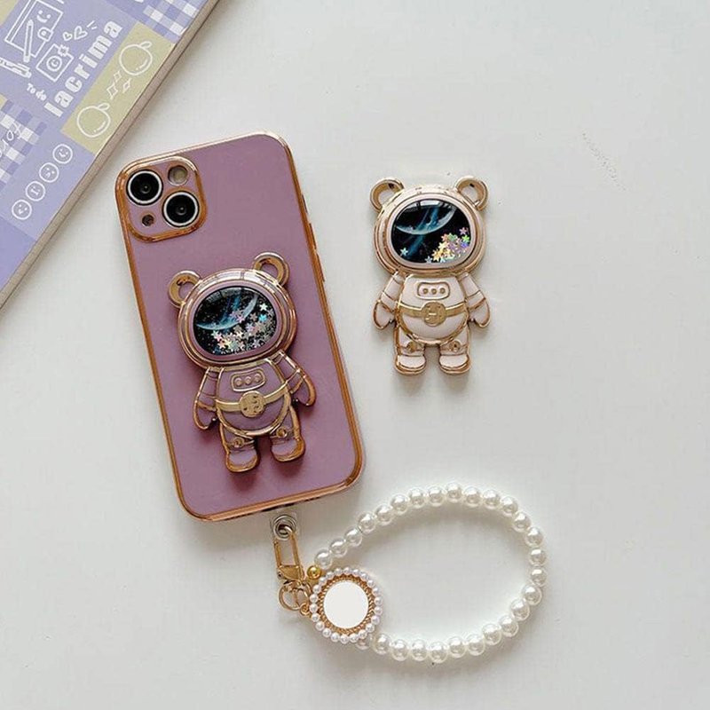 2Pcs Cute Phone Stand Holder, Cell Phone Astronaut Hidden Kickstand, Astronaut Phone Holder, Adjustable Tablet Phone Ring Stand with 3D Moving Star Sequins, Gift for Women Girl, Accessories