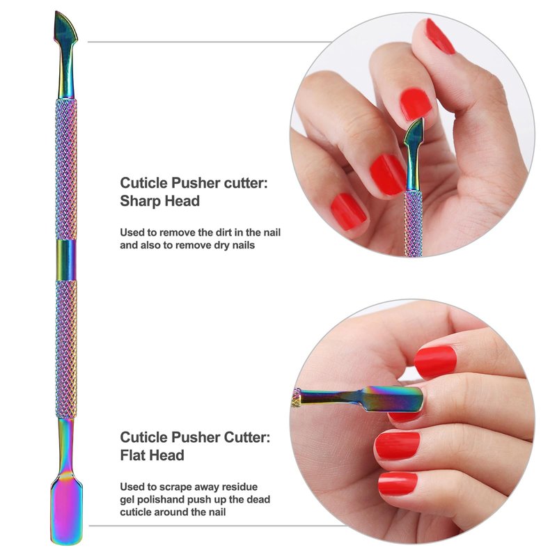 - ❤Easy to Use❸ :Cuticle pusher flat head:push down cuticles around nails or push the polish gel residue after removing; Cuticle pusher curved head: Remove the dead skin on nails,or remove the false nails pusher tool,clean the dirt under nails or remove the false nails;
