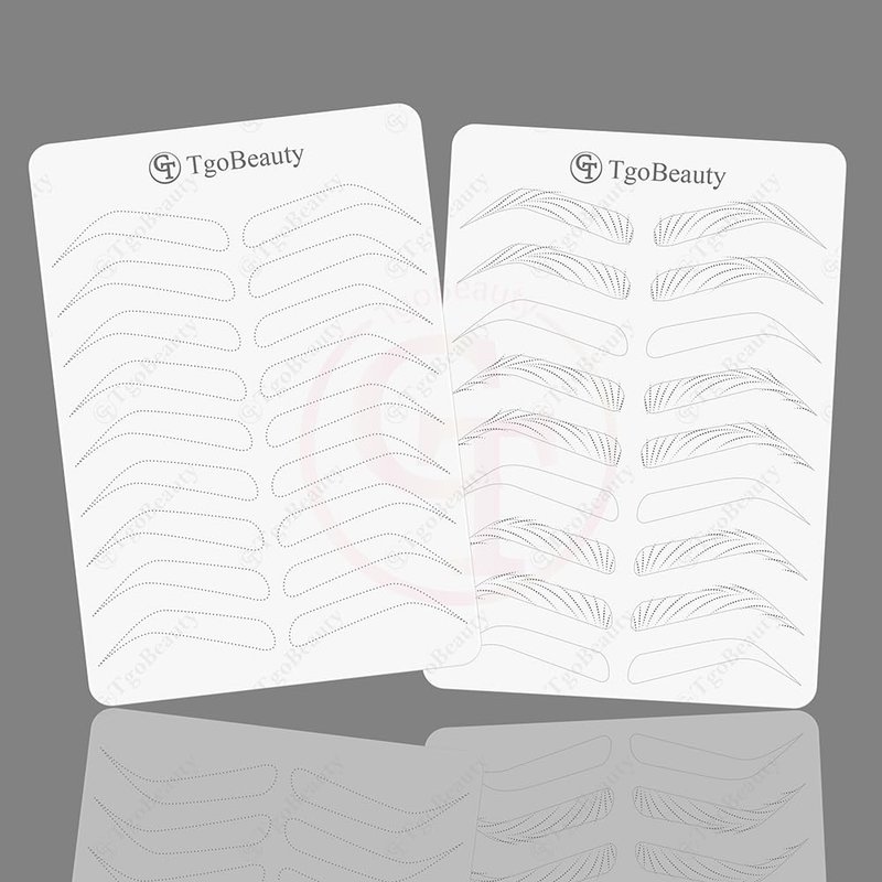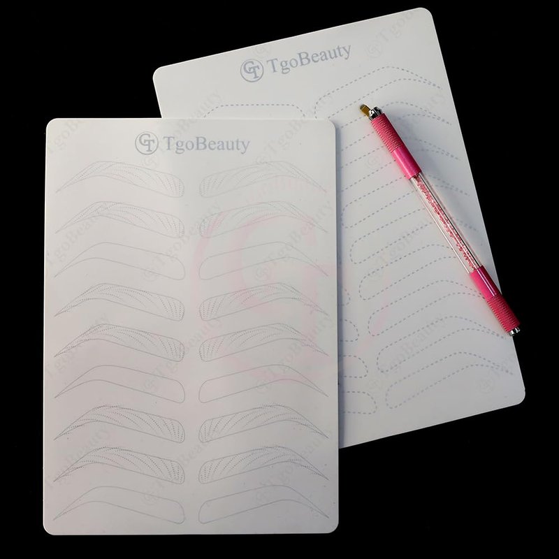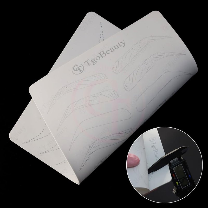 Features: Item Name: TgoBeauty Brow Permanent Makeup Practice Skin Material: Silicone Skin Color: White Shiny Silver Outlines Thickness: 1.5mm Double Sided Printed Front Side: 9 pairs empty eyebrow shapes with thin tracer dots Back Side: full hairstroke brow frames with 3 different common patterns Can be used to practice any brow technique. Level up your nano hair stroke technique. Package: 2pcs X White Brow Permanent Makeup Practice Skin