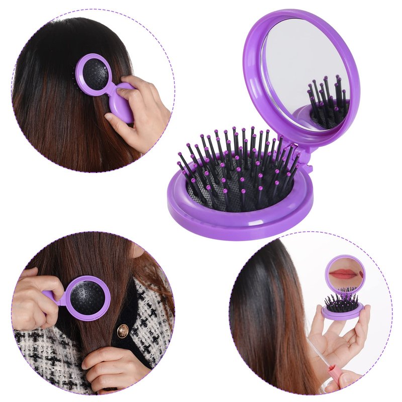 2pcs Folding Travel Mirror Hair Brushes Round Mirror Pocket Hair Brush Portable Mini Pop Up Hair Brushes for Women Girls --The folding pocket hair brushes can be used in various occasions such as travel and daily use. --Mini size that convenient to carry, perfect for put in purse, pocket and handbags. --Bring this mini brush when go out so if your hair gets knotted, you can quickly brush it out. --Our folding travel hair brushes are suitable for all kinds of hairstyles, thick, thin, curly, straight, long, medium, short, dry, wet, extensions and wigs. --The makeup mirror is convenient for you to organize our makeup, keep beautiful makeup. --Suitable for male and fermale, boys and girls, the aged, young people, and kids. Specifications: Material: ABS and nylon Color: rose red, purple Size: As picture shows, great for purse Package: 2 x folding travel hair brushes Notice: 1.Due to the difference in the shooting light, the actual color may be a little different from the pictures. 2.Please allow some small errors due to manual measurement.