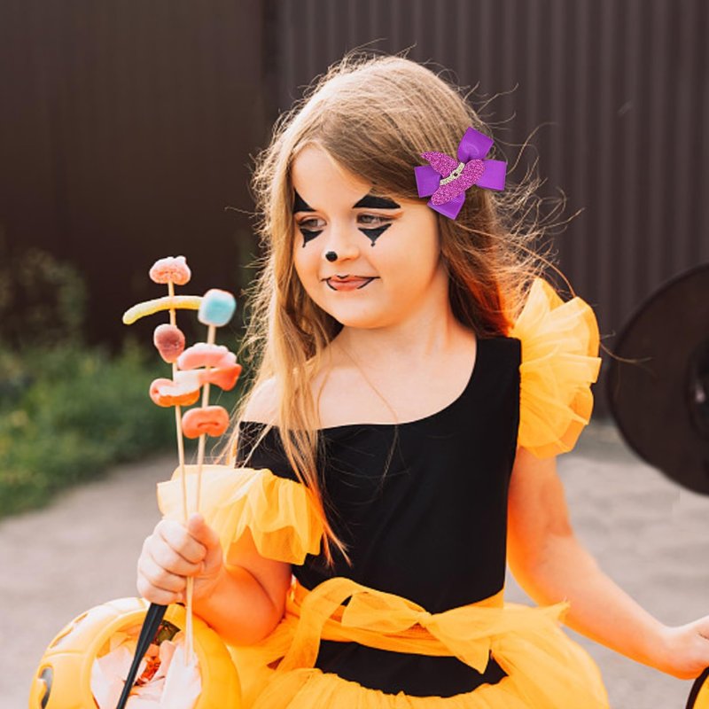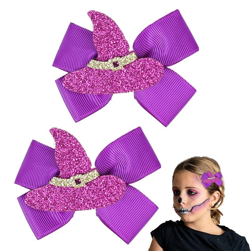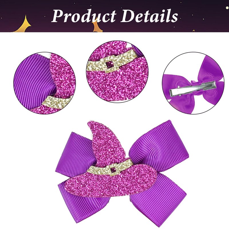 • 【Halloween Witch Hair Accessories】Halloween hair bow clips with purple ribbon bow and glittery witch hat decor are ideal for girls to wear for halloween, gothic party, theme party, witch costume, etc.