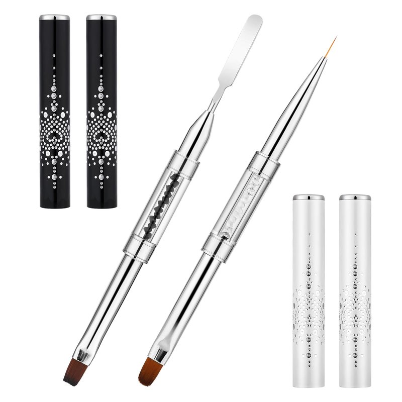 - What you get: 2 piece nail design brush sets with 4 styles for you to use, including: a nail metal file and flat gel nail brush as well as nail art liner brushes in two different sizes, our nail art detail brushes Allows you to achieve more complex and delicate patterns. Perfect for drawing lines and paintings on nail tips, giving you beautiful nails.
