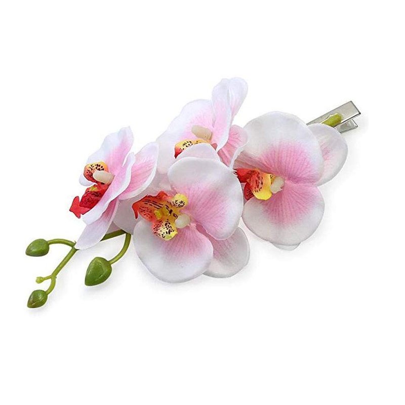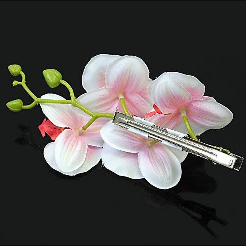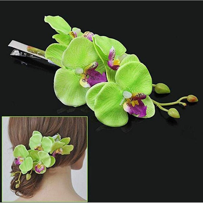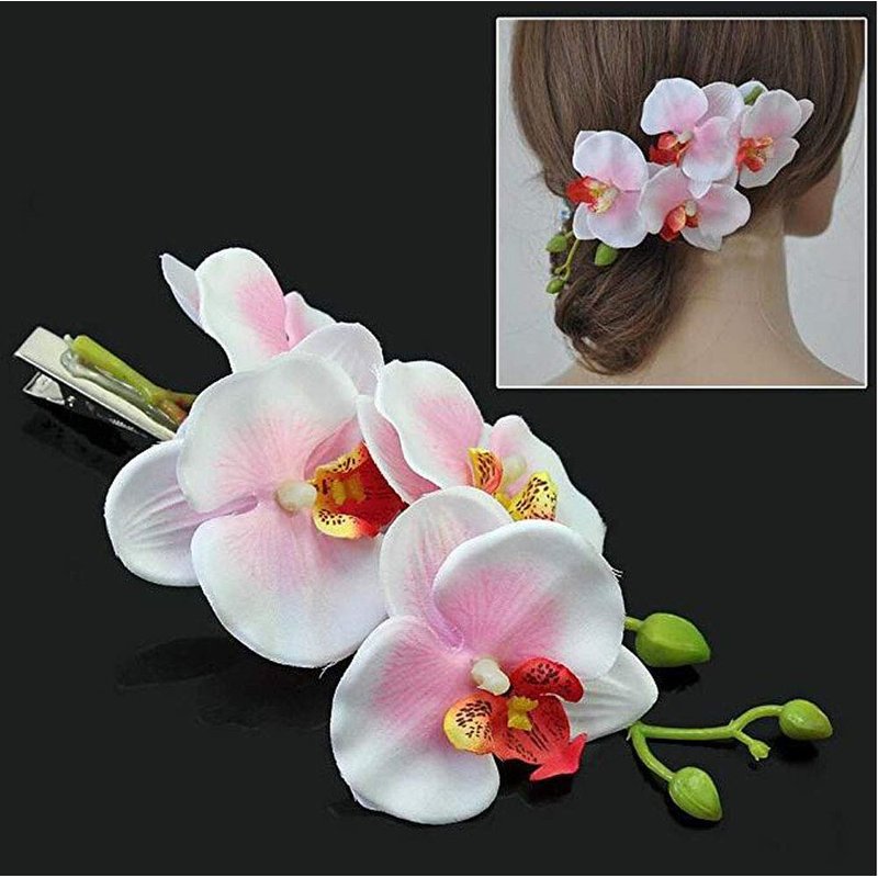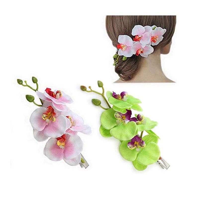 2PCS Hawaiian Orchid Flower Hair Clips Flowers Alligator Clips Hairpins Holiday Travel Wedding Decoration Hair Accessories For Women Lady Bridal (White Green)