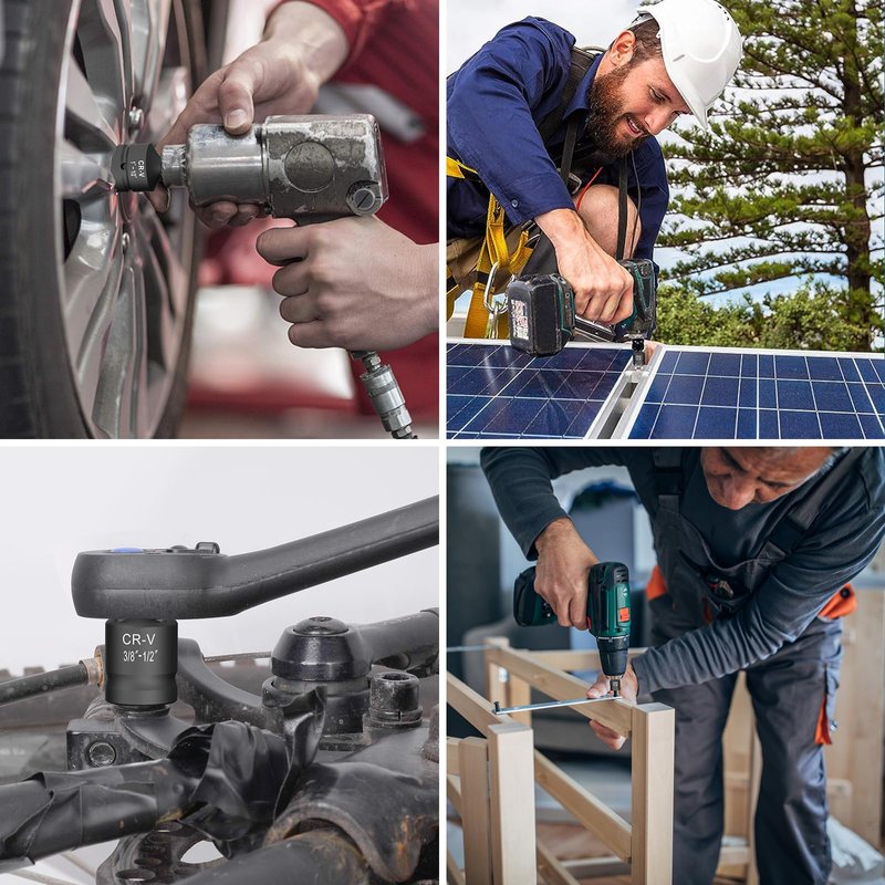 - 🎁What Will You Get? Our 2-piece impact socket set includes 3/8" F to 1/2"M adapter and 1/2" F to 3/8" M reducer set. Gives you the size you need for a smooth transition from socket to socket.