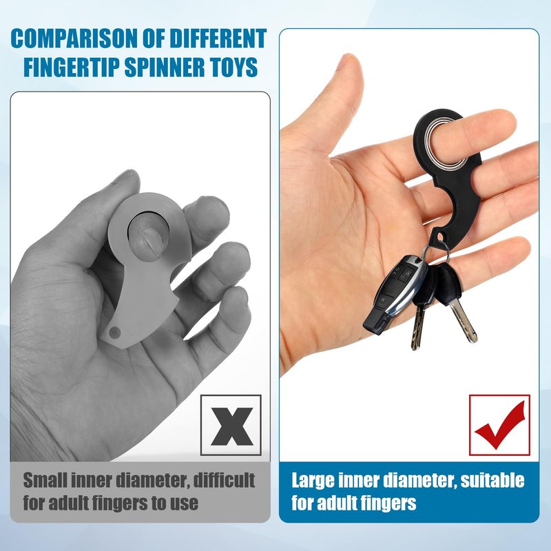 - Improve Concentration: When you are thinking about problems and fidgeting, you can use your finger to keep this keychain spinning, improving your concentration and making you clam.