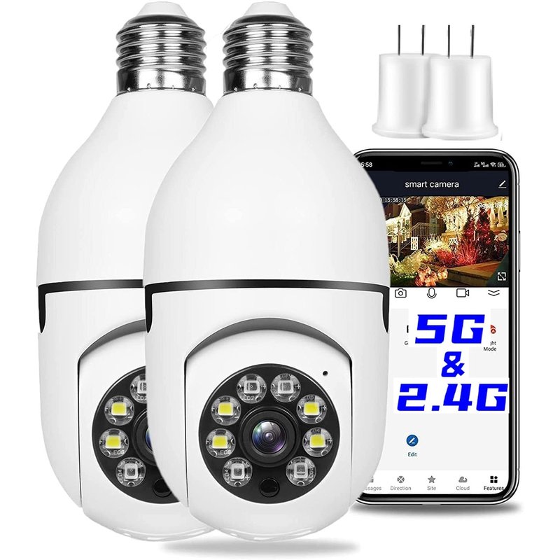 2Pcs Light Bulb Security Camera 2.4GHz & 5G WiFi Outdoor, 1080P E27 Light Socket Security Camera, Indoor 360° Home Security Cameras, Full Color Day and Night, Smart Motion Detection (2PCS, Support 5G)