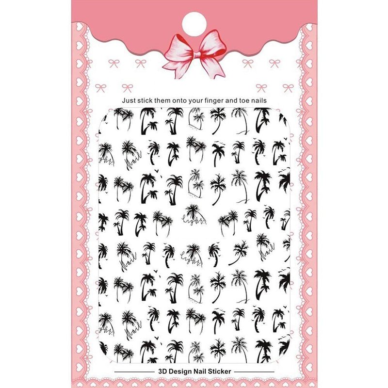 2pcs Nail Tropical Style Palm Summer Tree 3D Nail Stickers self-Adhesive Coconut Tree Manicure DIY Beauty Black Palm Tree Nail Stickers 3D Nail Decor Decal 2024 Beach Nail Decals