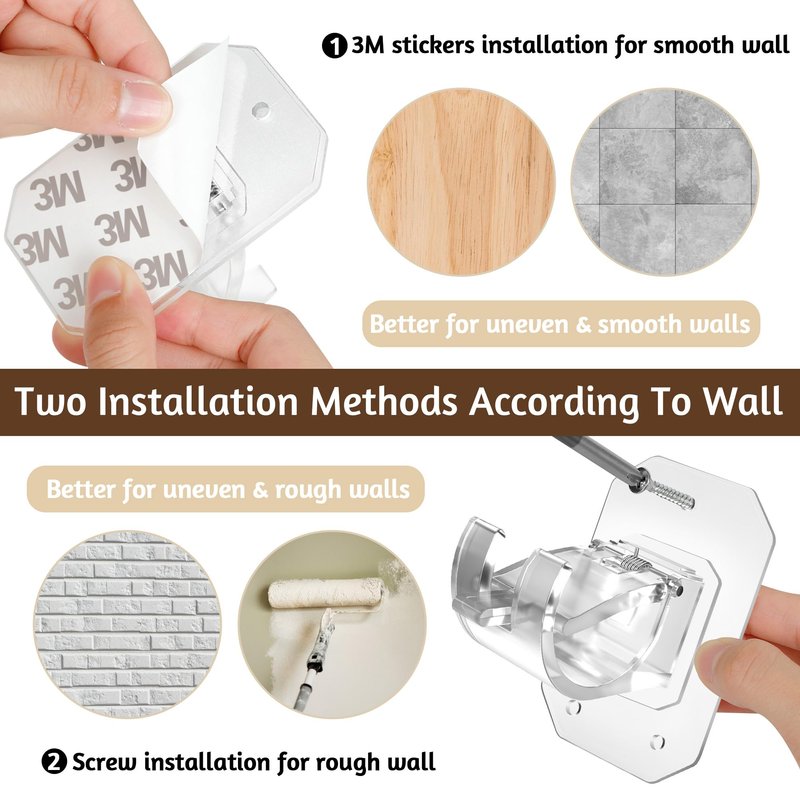 - 【Easy to Install】Curtain Rod Holders No Drilling feature a powerful adhesive on the backside, making installation quick and easy. Simply peel off the adhesive backing and stick the brackets onto any smooth surface such as glass, mirrors, ceramic tiles, marble, and stainless steel. With our brackets, you'll never have to worry about making unsightly holes in your walls again!