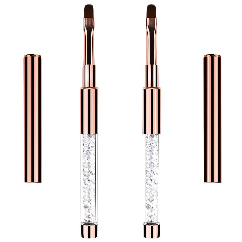2Pcs Oval UV Gel Nail Brush Rhinestone Handle Nail Art Design Brushes Nail Drawing Pen Gel Brushes for Nails
