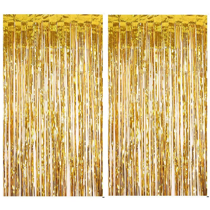 2PCS Party Decoration Backdrop 3.28 * 6.56 Feet Foil Fringe Curtain Tinsel Streamer Photo Backgrounds Hanging Decorations for Baby Shower Gender Reveal Birthday Wedding Themed Party Supplies Gold