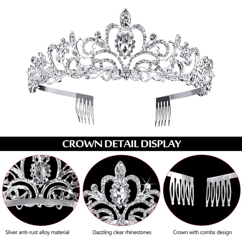 - ♛【Prom Queen Tiara】The tiara headband is Made of durable hard alloy and rhinestone. Alloy is with diamond look and hard texture for practicality and aesthetics.Two combs located on both ends of the crown which can grip the hair more tightly, preventing the slipping of the headband.