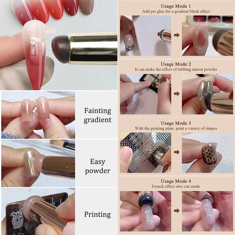 - 【Easy-to-Use Nail Design Brushes】This silicone nail art brush will make your nail design as easy as applying lipstick, just dip the silicone tip into some colored gel or mirror powder and pat it onto your nails for a natural gradient effect, suitable for personal use as well as for professional nail technicians.
