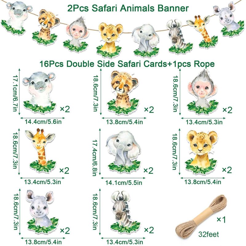 - Package Included: You will get 16pcs double side safari animals cards and 1 rope to create the bunting. This safari banner are adorable pattern, non-toxic and no odd smell, the rope is not easy to break, can be long time using.