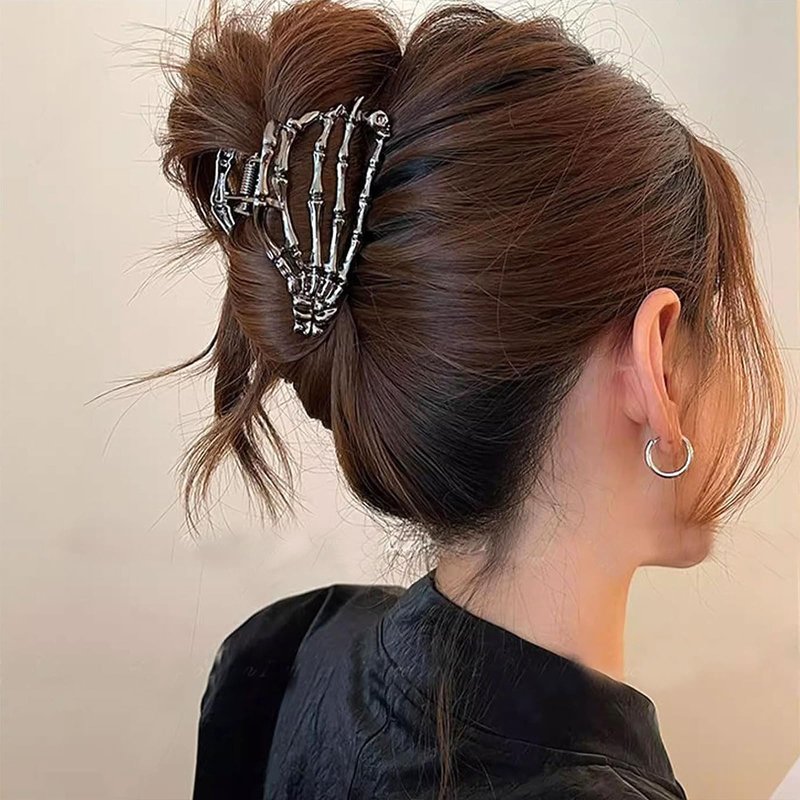 - 🦇【Wide Application】: The metal hand shaped hair clip with unique skull hand shaped designs, perfect for travel, shower, barbershop, cleaning, makeup, cooking, eating, bathing or work, they keep hair neat and dry and also great for everyday wear, parties, banquets, dates, weddings, and more.The french barrette metal hair clips for thick hair are also suitable for different colors hair,which make you charming on Halloween party.
