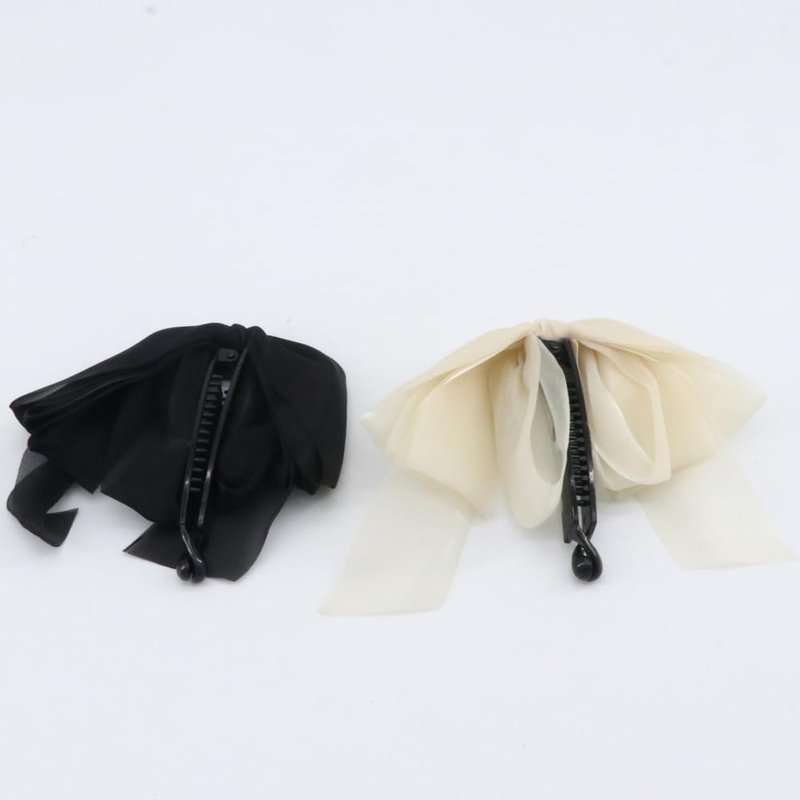 2Pcs Sweet Elegant Lace Women Vertical Clip Ponytail Holder, Ribbon Bow Hair Clip Women Headdress Hair Styling Tools Hair Accessories