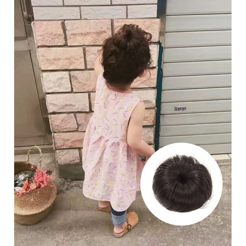 2PCS Synthetic Fiber Hair Bun with Alligator Clips Hair Extension Updo Donut Chignon Straight Synthetic Fake Ballet Messy Bun Short Ponytail Wig Hairpiece for Little Girls