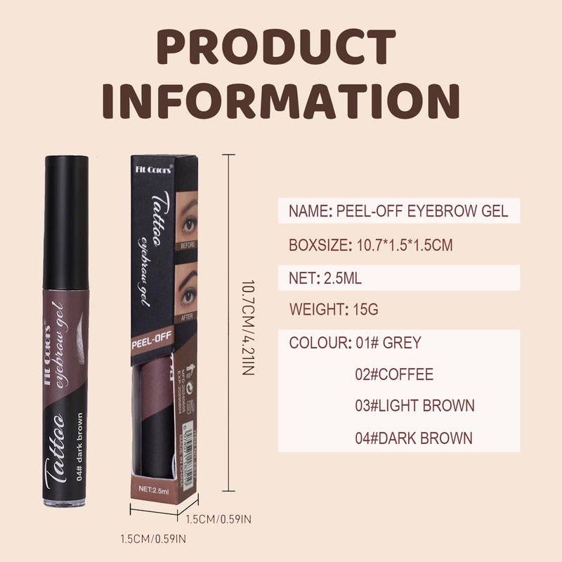 - 【Special Brush Head】The peelable brow gel has a soft flat brush made for custom brow shapes, which allows you to apply the brow tattoo gel evenly, and it's simple to create whatever brow shape you want to DIY.