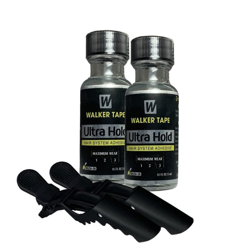 2pcs Ultra Hold Hair System Lace Glue Adhesive 0.5oz w/ 2pcs Black Hair Sectioning Clip Bundle Pack | Wigs Front Bonding Weave Active Lace Adhesive Glue | Super Bold Hold Adhesive Glue