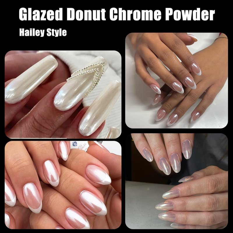 - 2 Boxes Clear Chrome Nail Powder: The white chrome powder for nails set contains 2 boxes moonlight pearl gel chrome powder, 2pcs sponge eyeshadow stick. This pearl chrome nail powder is the latest style of 2024. It will not cover the original color of the nail gel polish, and the glittering shiny is revealed after use.