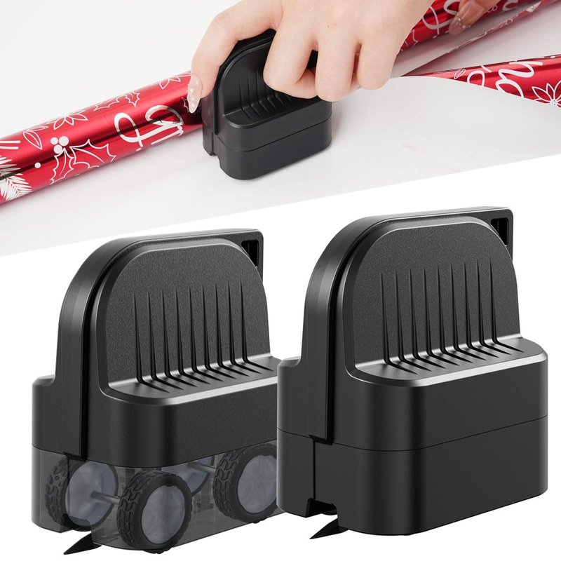 2Pcs Wrapping Paper Cutter, Gift Wrap Cutter with 2 Replaceable Blade 4 Wheels Compact Christmas Gift Wrapping Paper Roll Cutter Tool Black