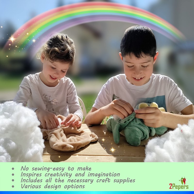 If you are looking for fun dinosaur toys for kids 3-5, 5-7 that will bring smiles into the room, then you should look no further! 2Pepers make your own dinosaur pillow craft for kids is exactly what you're looking for! THE ULTIMATE FUN ARTS & CRAFTS PROJECT FOR BOYS & GIRLS Develops creativity and imagination Easy to make Includes all the necessary craft supplies Various design options MUCH MORE THAN JUST A DINOSAUR! Exciting boys toy that sparks creativity, engaging your child’s mind and hands SO MUCH FUN! Children can choose how to design their soft dino and express themselves. A PERFECT GIFT RECOMMENDED FOR ANY OCCASION DIY stuffed dinosaur pillow kit which is also a self-styling doll! A complete set with everything needed to easily create a soft, velvety dinosaur room decor. Great for boys birthday gifts, special holidays or just a cool craft for any day. A COMPLETE KIDS CRAFT KIT What's in the box? 1 glowing in the dark velvety dinosaur case. 100% polyester fibers stuffing. 8 colorful fleece strips. 26*2 felt letters stickers. 10 light-in-the-dark stars stickers. Gift packaging. Step by step instruction manual