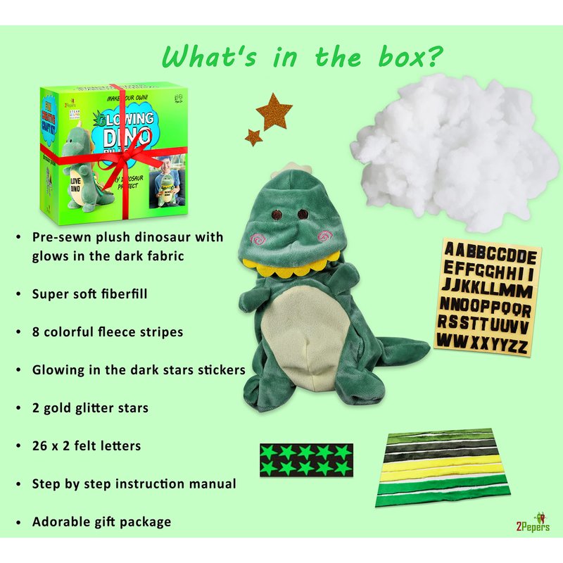 - MAKE YOUR OWN GLOWING-IN-THE-DARK DINOSAUR: our special DIY dinosaur craft for kids is easy to make- no sewing needed. Fun dinosaur toy craft kit made from soft plush and glows in the dark fabric.