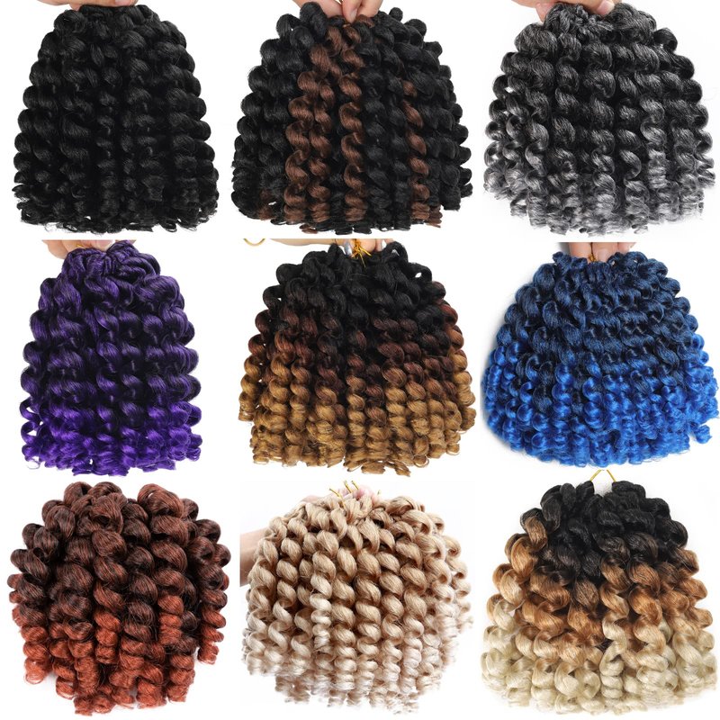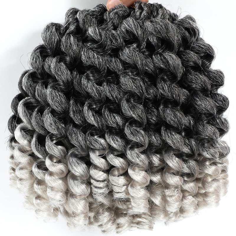 2X Ringlet Wand Curl Jamaican Bounce 3 Packs Silver Grey 8 inch Synthetic Crochet Hair Extensions Short Crochet Braiding Hair 20 Roots (#Ombre Silver Gray)