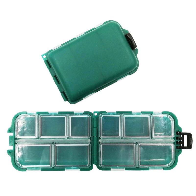 2x Small Hard Fishing Tackle Box Portable Case Hooks Lure Baits Storage Box Containers For Storing Swivels Jigs Hooks Sinker,10 Compartments (Green)