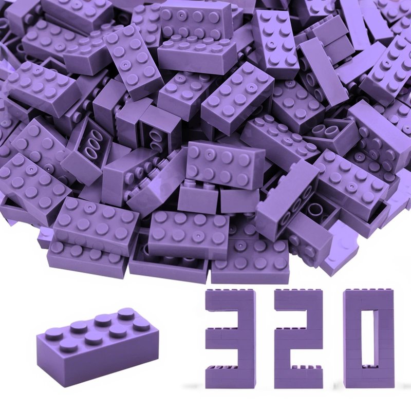 2x4 Building Bricks 320 Pieces, Medium Lavender Bricks Bulk Kit, Basic Parts Accessories, Classic Creative Building Blocks Set, Compatible with Generic Brands