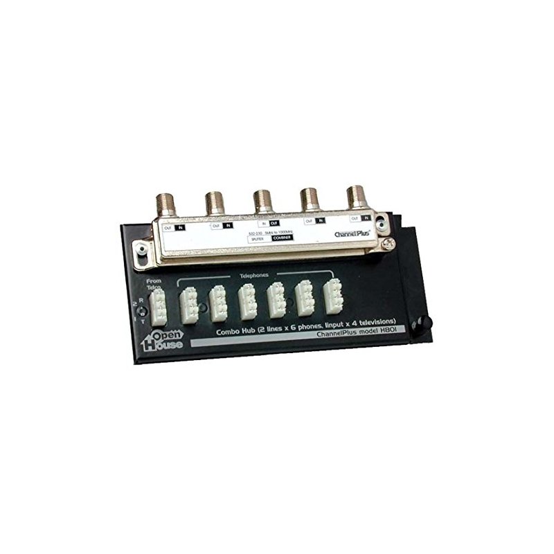 The Model H801 Combination Telephone/TV Hub provides a grid mounted solution for distribution of telephone and television. Two telephone lines can be distributed to six locations. CATV or antenna signals can be routed to four locations with the high quality on-board splitter.