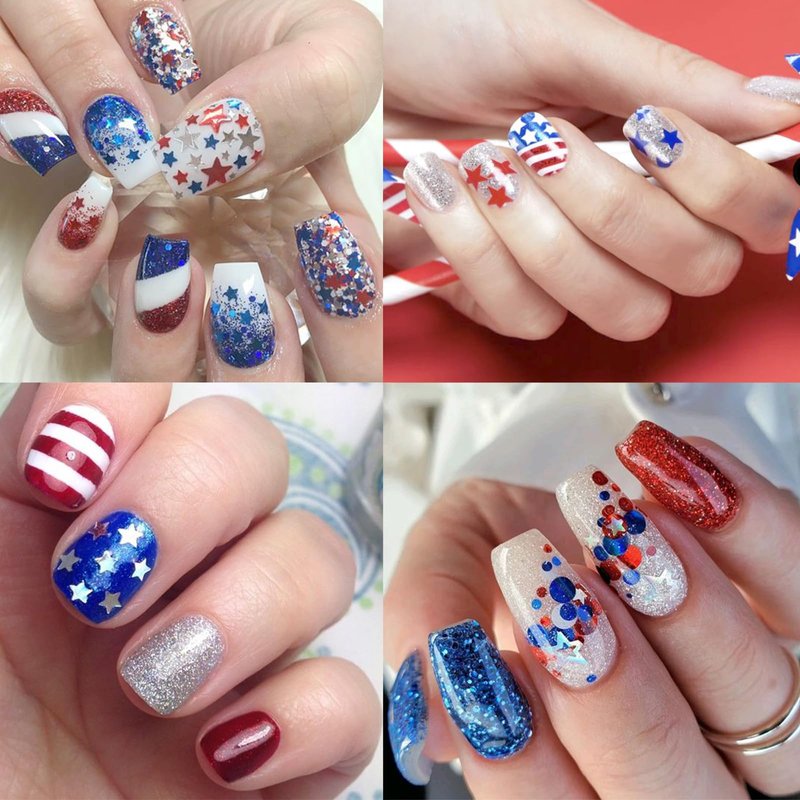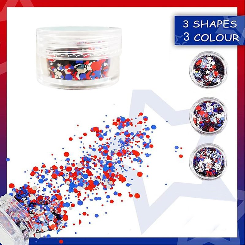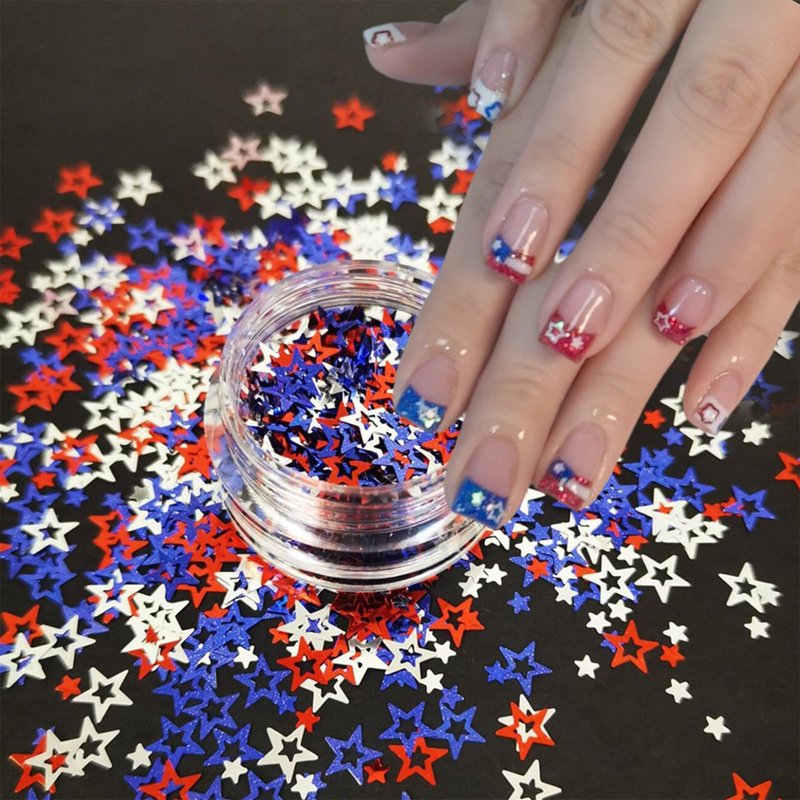 - Easy To Use: Suitable for professionals or beginners. independence day stars Nail glitter nail sequins are excellent for natural or artificial nails. And can be combined with all UV gel nail polish, DIP powder, and all nail powders.