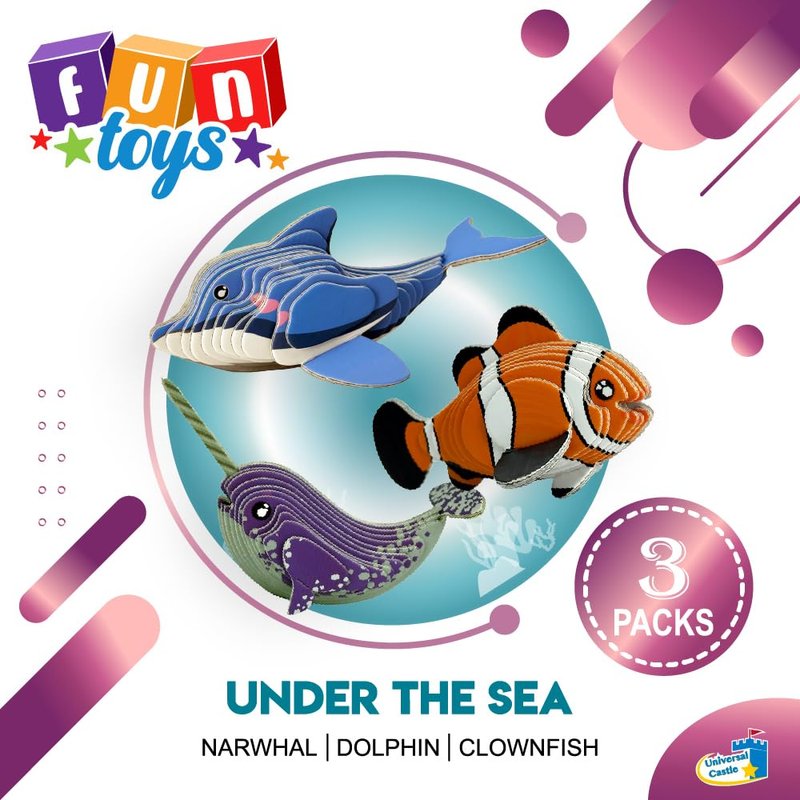 - 【Shareable Fun】3 in 1 Under the Sea include a Narwhal, Clownfish and dolphin. This 3-in-1 puzzle kit promotes social interaction, teamwork, and cooperation.
