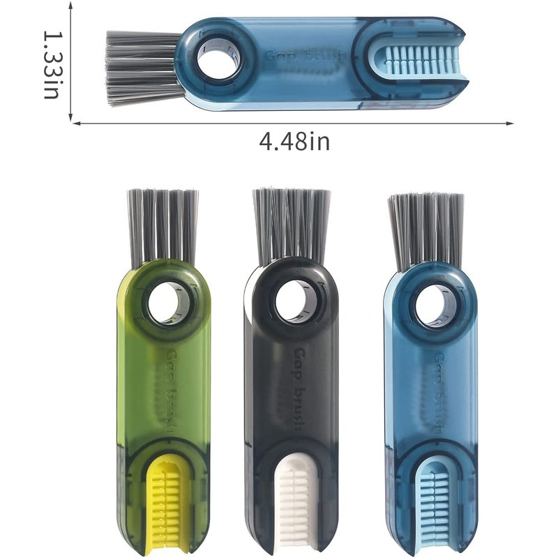 3 in 1 Tiny Bottle Cup Lid Detail Brush Straw Cleaner Tools Multi-Functional Crevice Cleaning Brush, Water Bottle Cleaning Brush for Bottles Clean Brushes for Nursing Bottle Cups Cover FEATURES: U-shaped brush: matches the cup mouth to clean stubborn stains around the cup mouth; Gap Brush: Clean the narrow grooves on the inner wall of the cup cover; Corner brush with hard bristles: Remove the dirt in the corner groove of the container. Specification: Product Name: 3-in-1 Cup Lid Crevice Cleaning Brush Material: ABS+PP+PET+silica gel Color: Gray/Blue/Green Weight: 35g(with box) Size:3.4*1.6*11.4cm Package includes: 1 Pcs Green* 3-in-1 Cup Lid Crevice Cleaning Brush