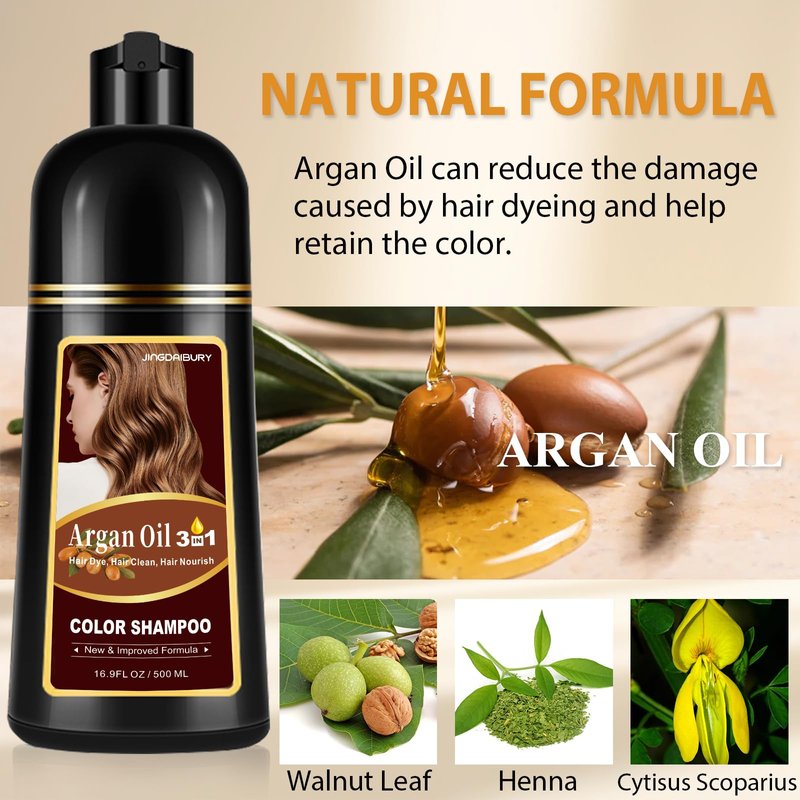 Hair Dye Shampoo 3 in 1, Argan Oil Hair Color Shampoo for Women & Men, Instant Shampoo Hair Dye for Gray Hair