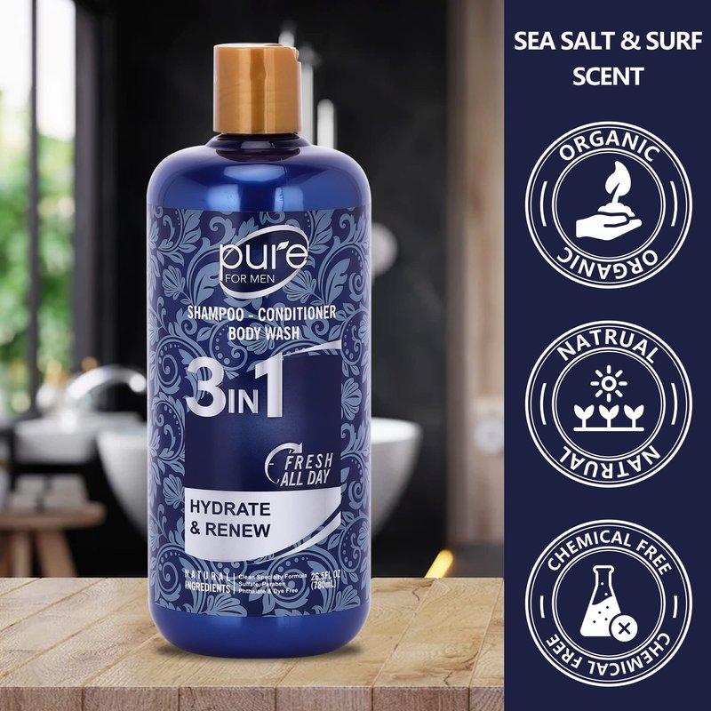 3-in-1 Men's Shower Gel: Shampoo, Conditioner, Body, Hair & Face Wash - Paraben & Sulfate Free, Keeps You Fresh All Day!
