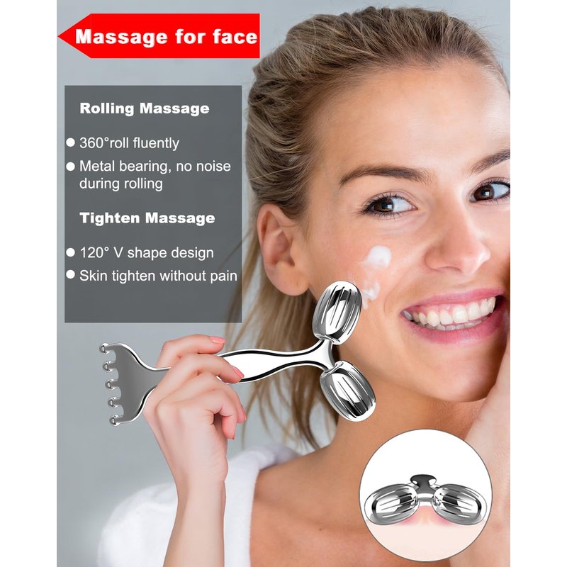 3-IN-1 Metal Massage Roller, Scalp Massager and Gua Sha, Metal Face Massager Roller Guasha, Facial Massage Roller