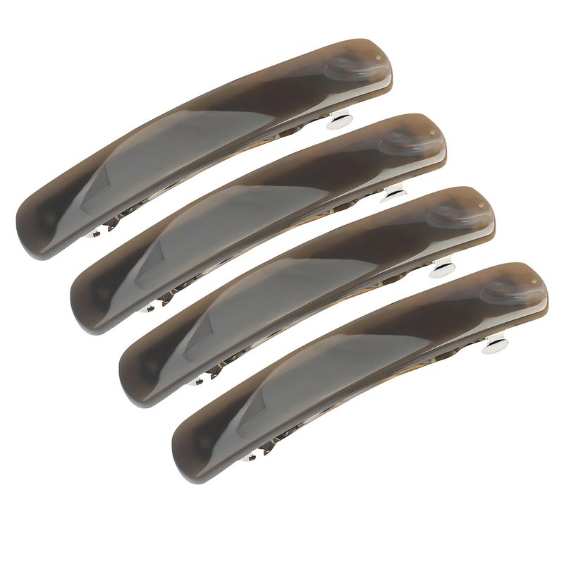 3 Inches Shiny Transparent Curved Acrylic Celluloid French Barrettes Acetate Tortoise Shell Hair Barrettes for Thick Hair Chic Ponytail Hair Clips for Styling Long Hair,4pcs (Grey)