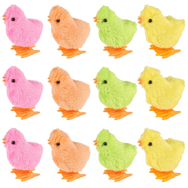 3 otters 12PCS Wind Up Chick Toys, Colorful Wind-Up Jumping Cute Chicken Plush Chicks Toys for Kids Goodie Bags Treasure Chest Party Favors Gifts