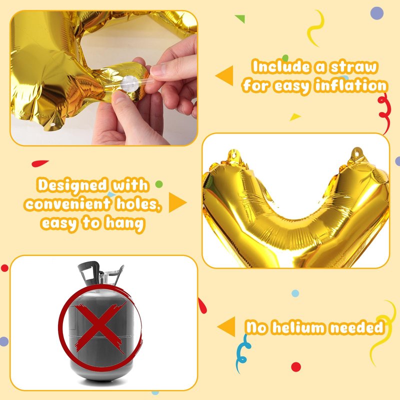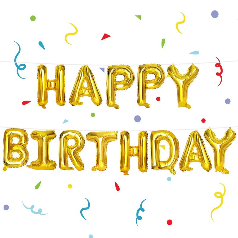 - Package Includes - This set features 1 set of 16" gold Happy Birthday Balloon Letters, along with 1 rope and 1 straw. Use the gold Happy Birthday Sign to create a dreamy backdrop for your birthday celebration.