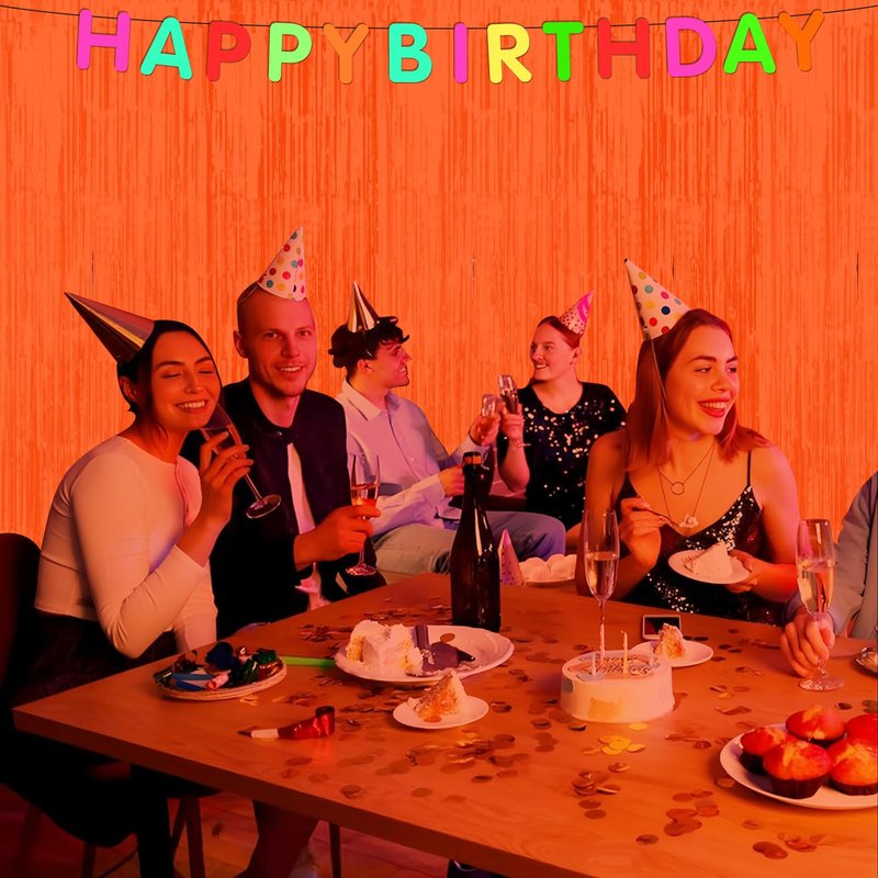 3 Pack 3.3Ft x 6.6Ft Orange Glow in The Dark Foil Fringe Curtain Backdrop Party Supplies, Fluorescent Macaron Metallic Tinsel Foil Streamers Curtain Photo Booth for Neon Birthday Party Decorations