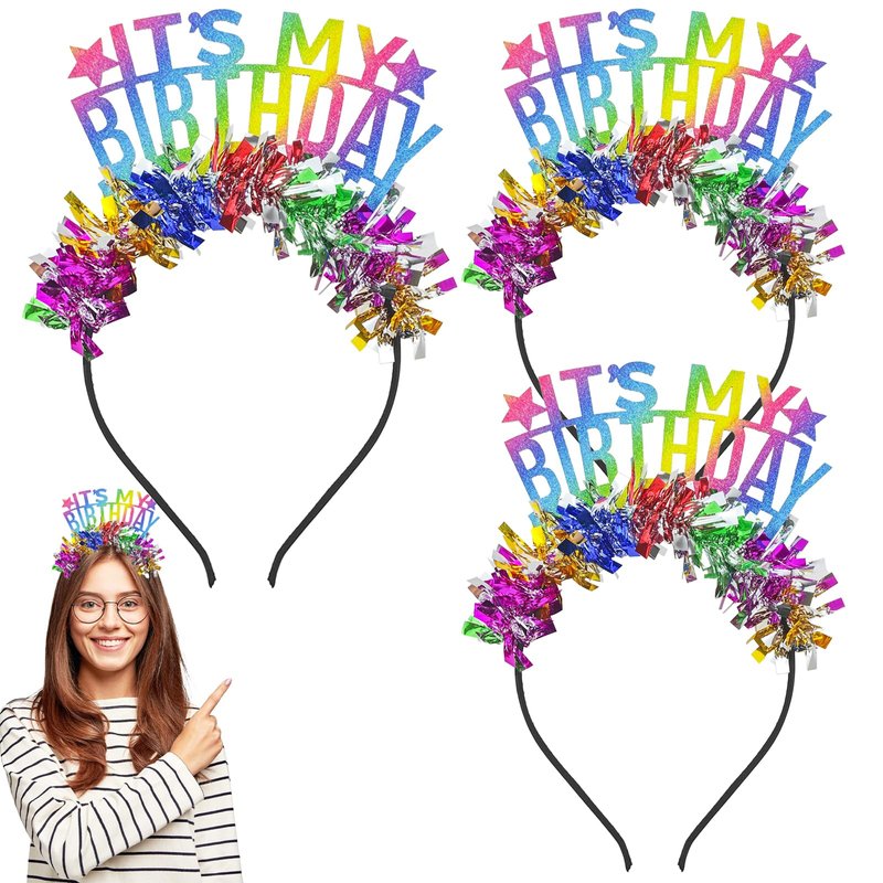 - 【PACKAGE CONTENTS】- You will receive 3 pieces of birthday headbands with letters and small plastic strips on them, sparkling under the light and eye-catching.
