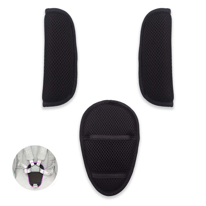 3 Pack Car Seat Strap Covers and Crotch Pad Combo for Baby Stroller, Soft Seat Belt Strap Covers Universal for Newborns Infants Kids Child, Pushchair Seat Belt Covers(Black)
