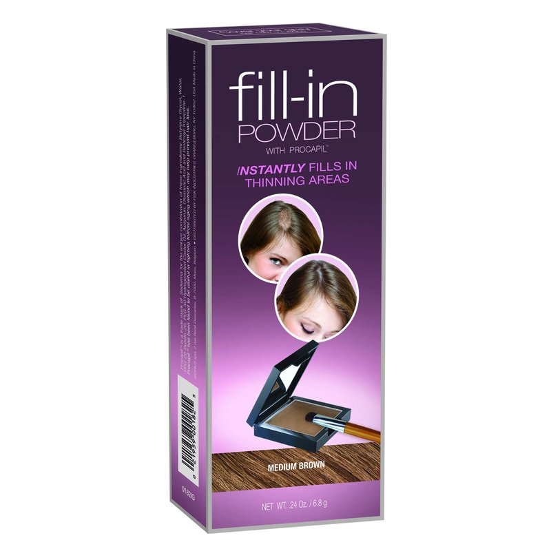 An effective concealer. This matte powder instantly fill-in thinning and balding areas to produce the appearance of thick, full hair. Blends in seamlessly and matches your hair color perfectly. No one can tell you have it on! Rain proof & sweat proof... won't run, streak or rub off. Washes out only when hair is shampooed normally. Suitable for all hair types.