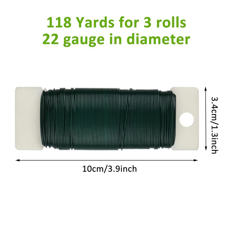 - WHAT YOU GET: 3 Roll 118.2 yards 22 gauge green floral wire, our 7*24 friendly customer services for peace of mind.