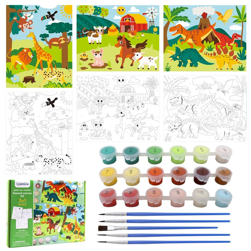 - 【Include Everything You need】 This painting kit includes everything they need to create their own masterpiece. With 3 numbered framed canvas, 18 non-toxic paints, and 5 brushes, children can bring their imagination to life by simply matching the numbers on the canvas to the corresponding paint colors.