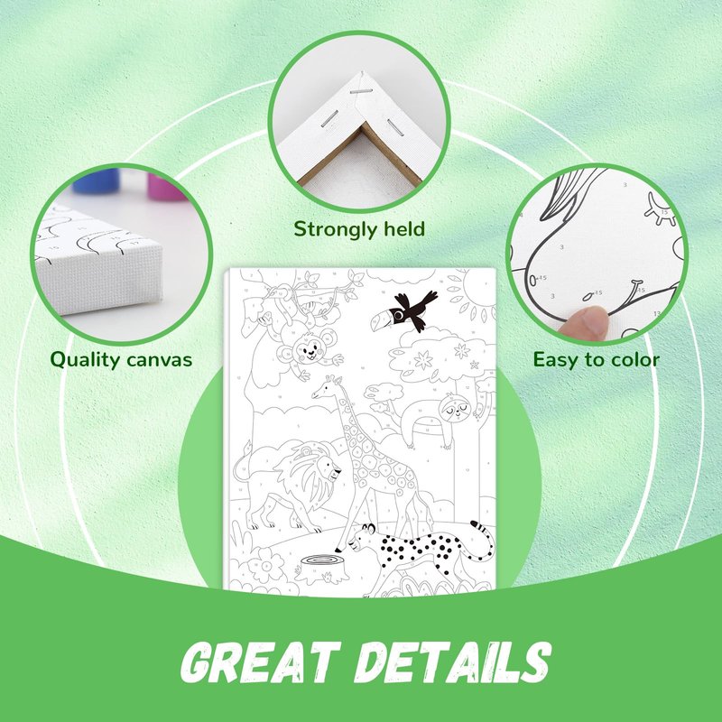 - 【Fun and Educational】Not only does our kids paint by numbers kit provide hours of entertainment, but it also helps to develop essential skills such as hand-eye coordination, concentration, and creativity. Watch as your child's confidence and artistic abilities grow with each completed painting.